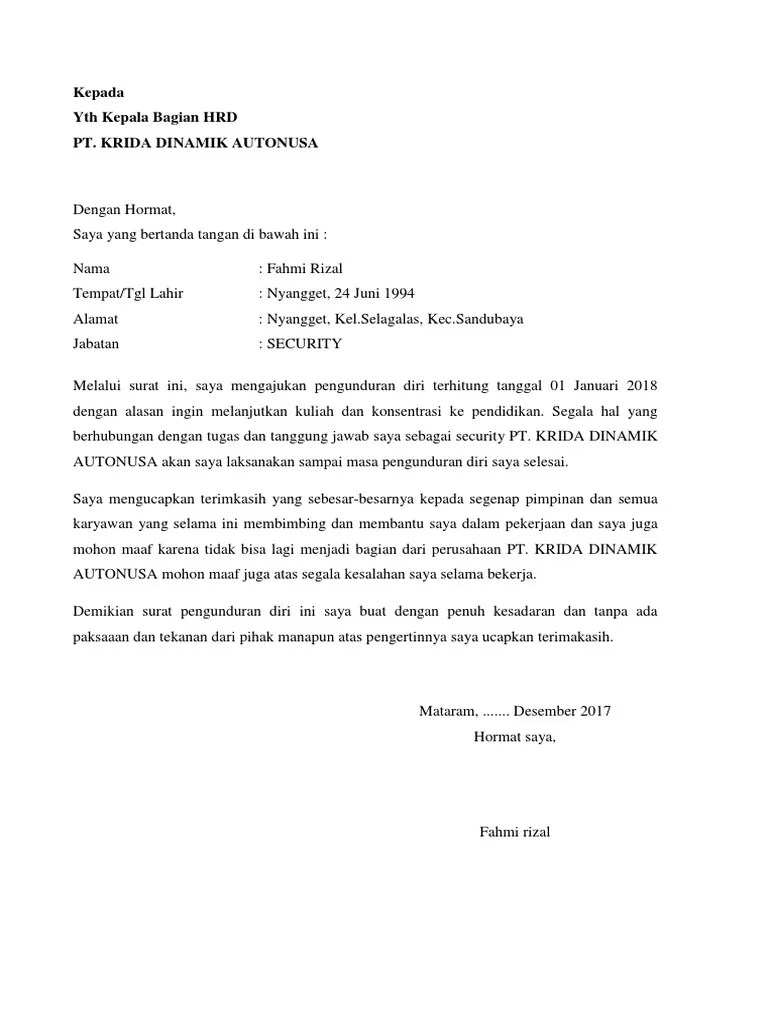 28+ Contoh Surat Pengunduran Diri Kerja File Word Pics. Contoh surat resign bahasa inggris. Contoh surat pengunduran diri sederhana.